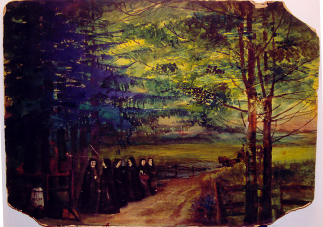 417 State Street, Towanda, PA, 1862-1864. Painting of first sisters arriving in US at Towanda, PA; done for golden jubilee at Sharon; not historically accurate as all six sisters did not arrive at once. |