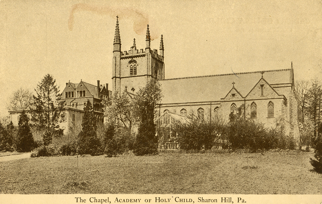 Academy of the Holy Child Jesus, Sharon Hill, PA, 1864-1973. Postcard of chapel.