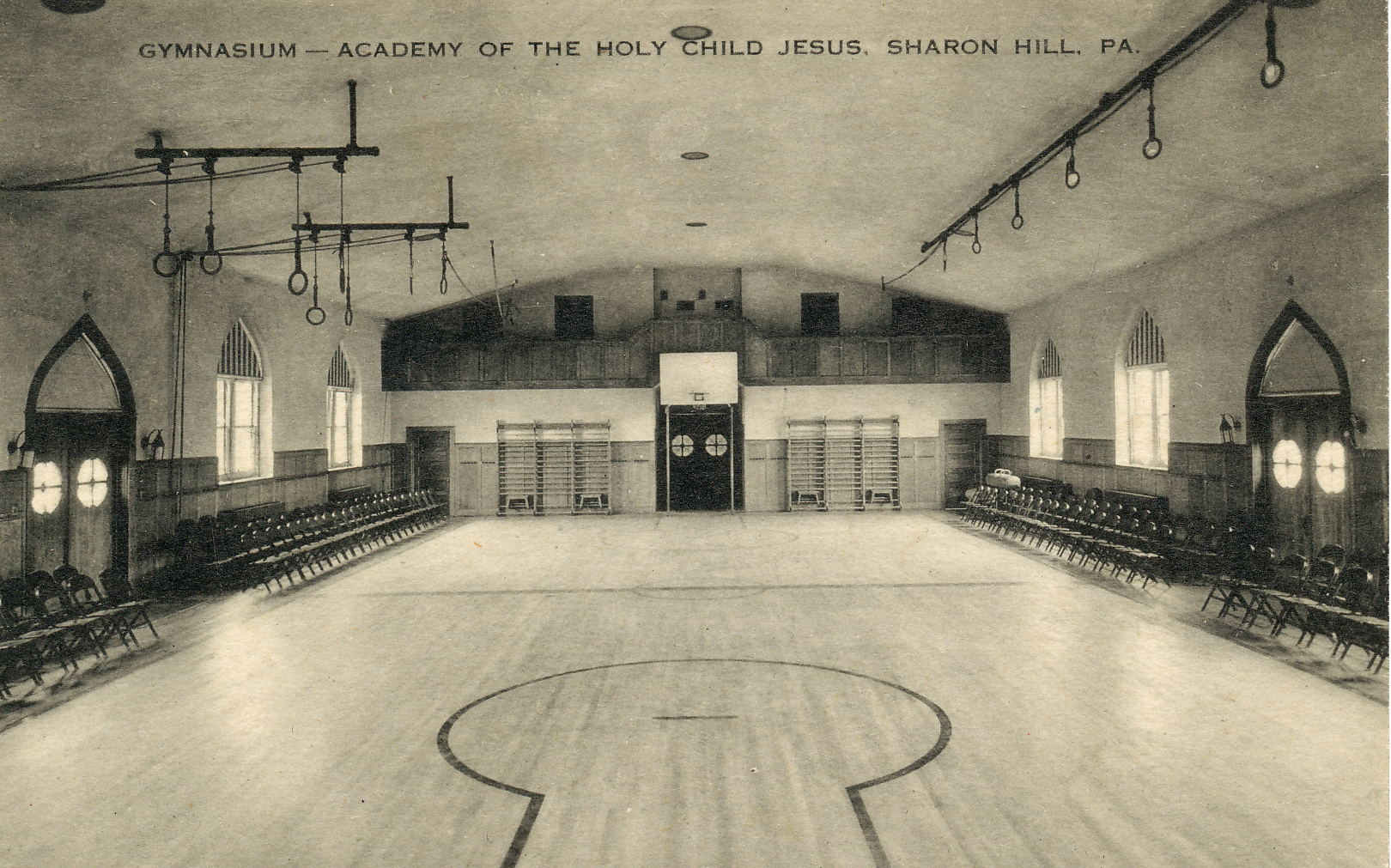 Academy of the Holy Child Jesus, Sharon Hill, PA, 1864-1973. Postcard of gymnasium.