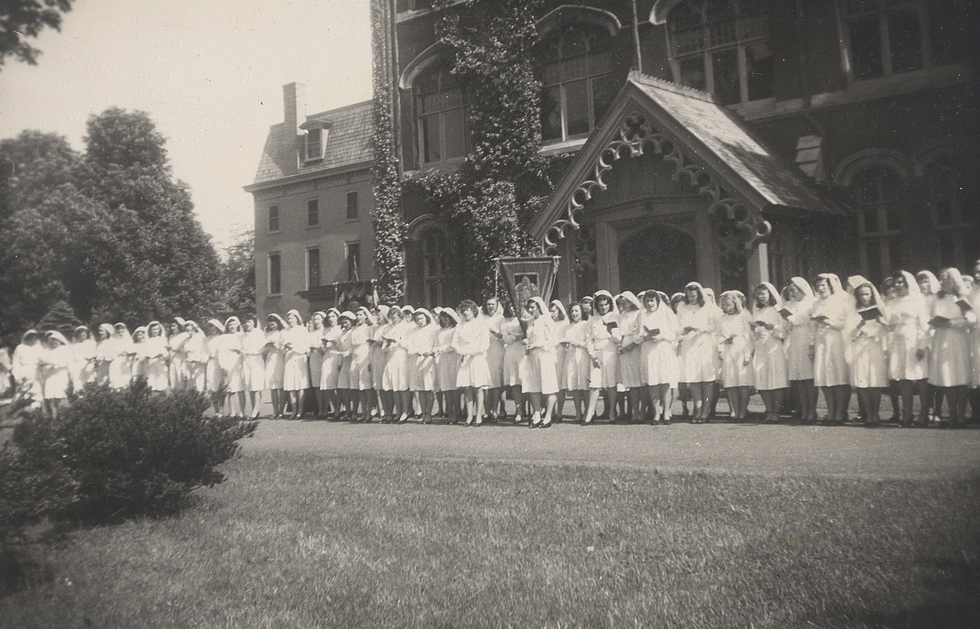Academy of the Holy Child Jesus, Sharon Hill, PA, 1864-1973. Photo of students and staff.