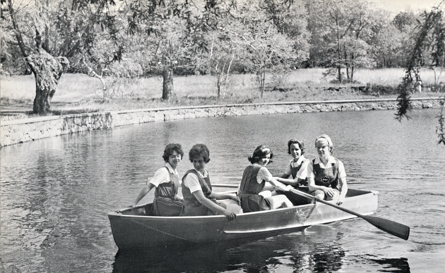 Academy of the Holy Child, Suffern, New York, 1912-1971. Photo of students on lake.