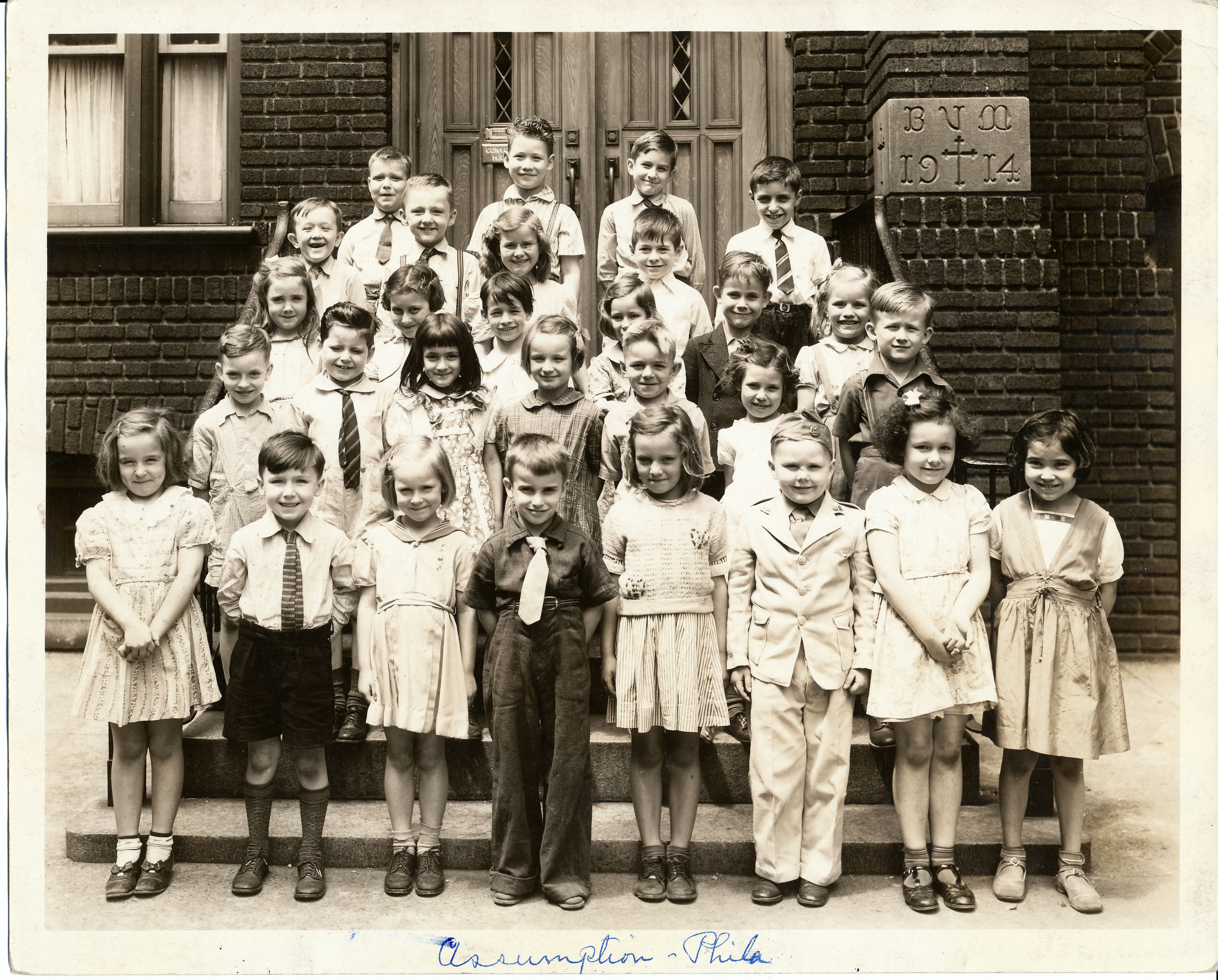 Assumption Parish School, Spring Garden Street, Philadelphia, 1863 - 1972. Photo of 1st or 2nd grade class. |