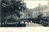 Convent and School of the Holy Child Jesus, Cavendish Square, London. Postcard of students in front of school. |