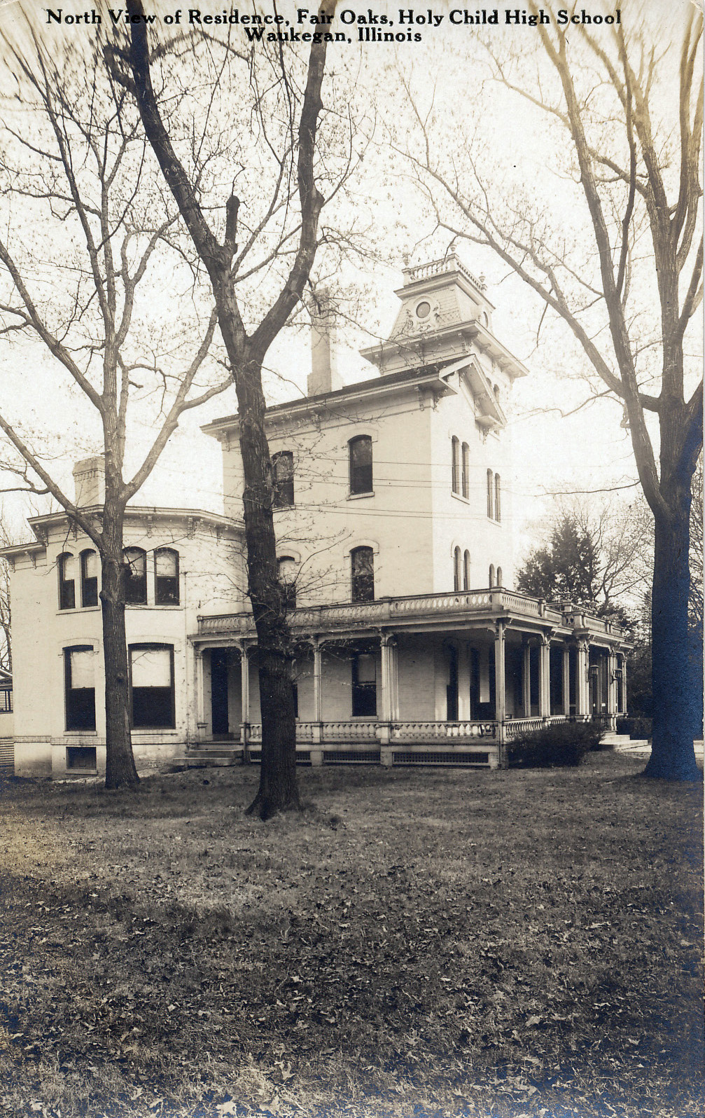 Holy Child High School and Convent, 988 N Sheridan Road, Waukegan, Illinois, 1921-1976. Photos of "first house purchased by the Society in Waukegan - destroyed by fire Nov. 27, 1930. A new school was built on the same site. The house journal records the following: 'The convent and dormitory were finished in 1931, the school in 1926.'" |