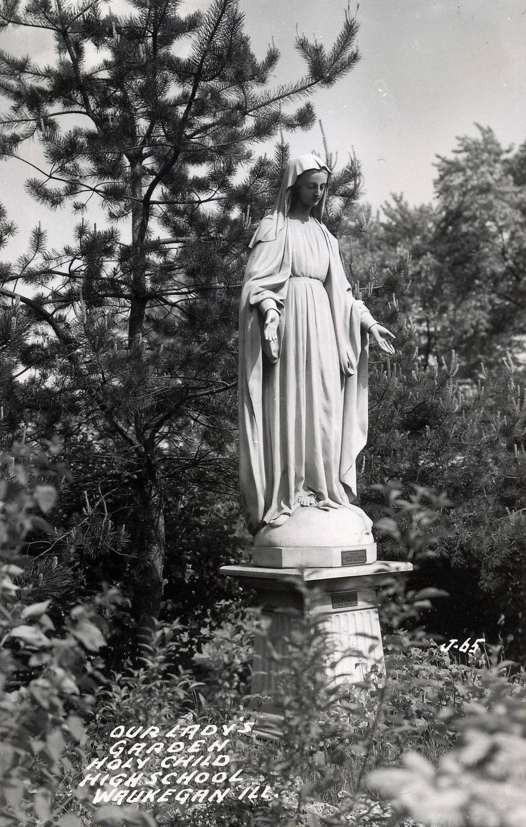 Holy Child High School and Convent, 988 N Sheridan Road, Waukegan, Illinois, 1921-1976. Photo of garden at Holy Child High School. |