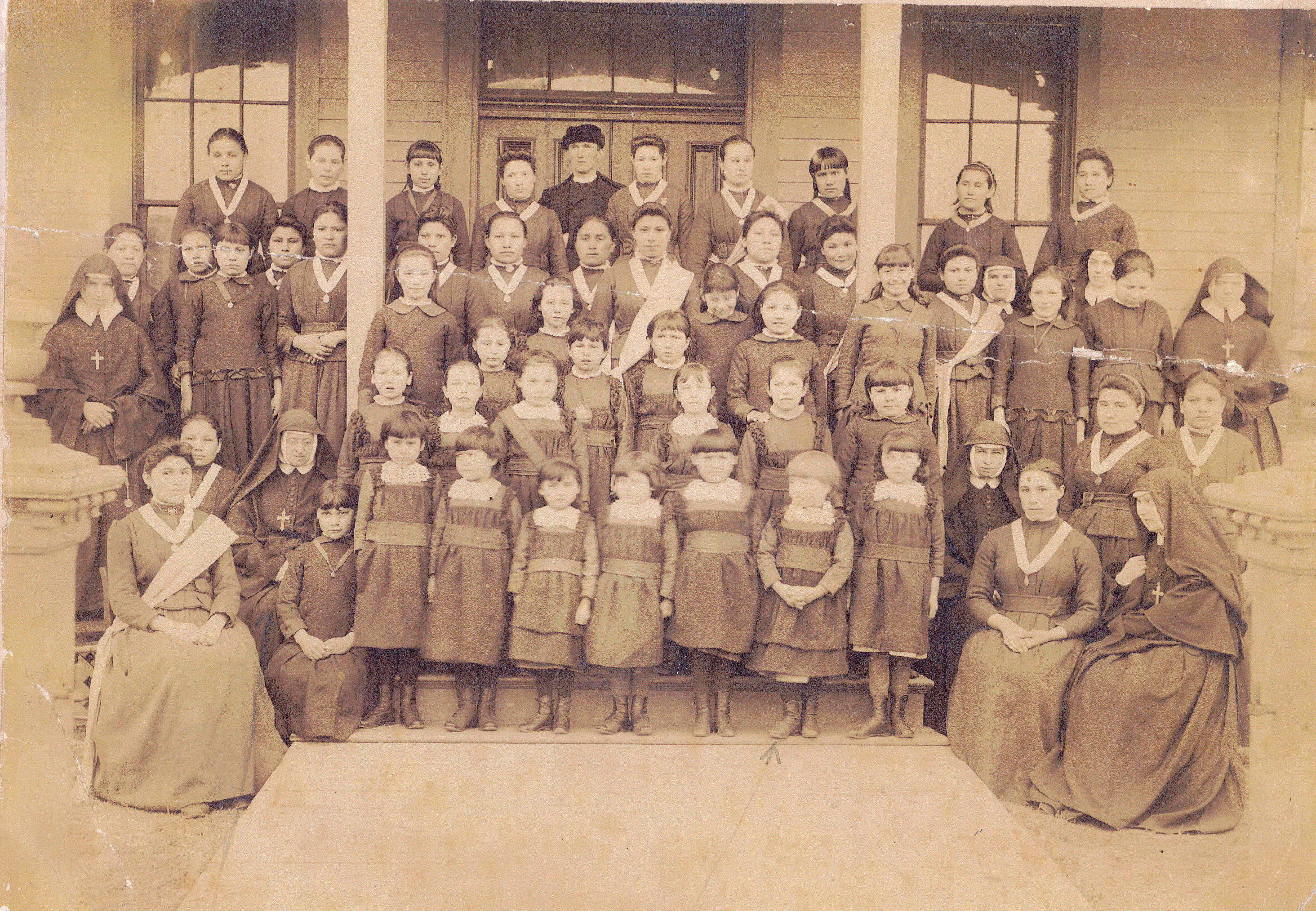 Holy Child School, Avoca, MN, 1883-1890. Photo of students and sisters. |