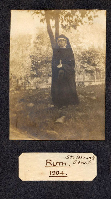 Holy Child School, Lincoln, NE, 1883-1907. Page from photo album, "Ruth" on Feast of St. Teresa. |
