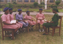 Photo of students and teacher at Holy Child Secondary School in Calabar, Africa |
