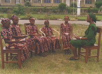 Photo of students and teacher at Holy Child Secondary School in Calabar, Africa |