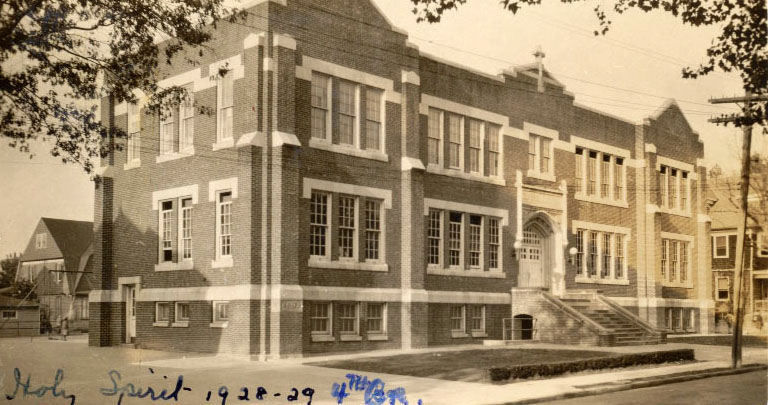 Holy Spirit Parish School, Sharon Hill, PA, 1901-1992. Postcard of school.