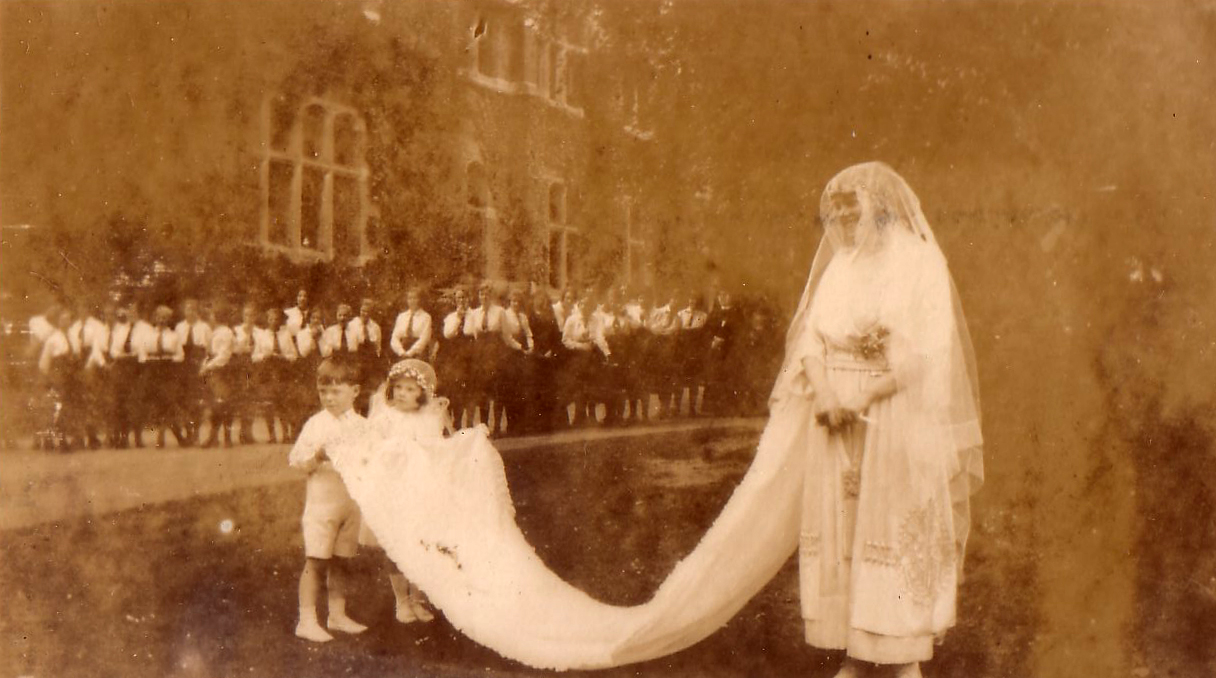 St. Leonards - Mayfield, Mayfield, Sussex, England. Originally Mayfield School of the Holy Child. Photo of Winnie Rochford and her train bearers on her "clothing day." |