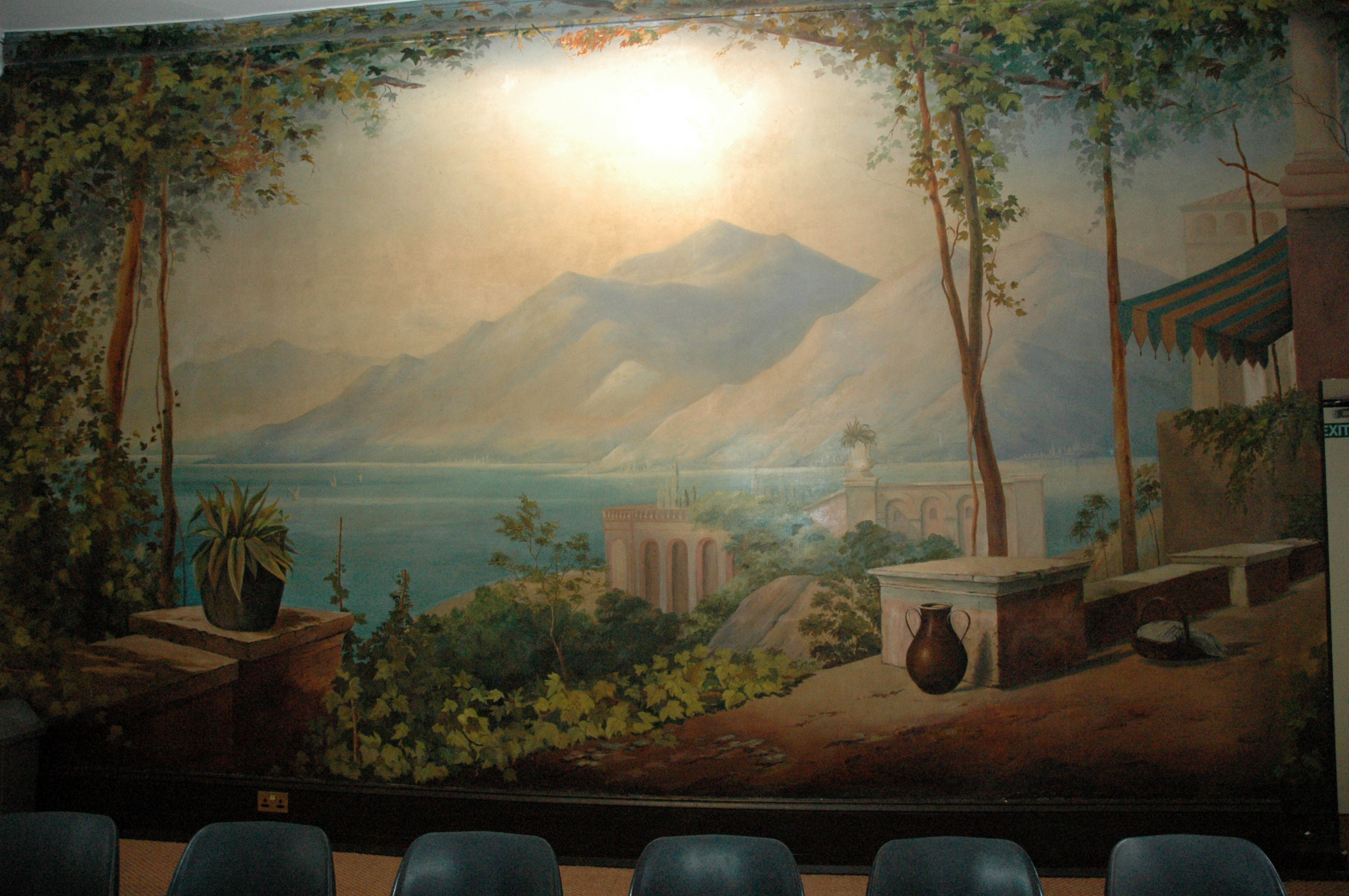 St. Leonards - Mayfield, Mayfield, Sussex, England. Originally Mayfield School of the Holy Child. Wall mural. "Some of the early Holy Child sisters and students of Mayfield painted this scene during the last years of Cornelia Connelly's life as a back drop for school plays." |