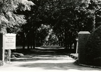 Old Westbury school of the Holy Child, Old Westbury NY, 1959-1981. Photo of entrance to campus.