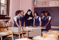 Our Lady of Lourdes Parish School, New York, NY, 1904-1957 . Photo of students and sister in classroom. |