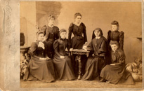 Photo of pupil teachers (students who were in training to become teachers) with M.M. Wilfrid (who died in 1893) at St. Walburge's School. |