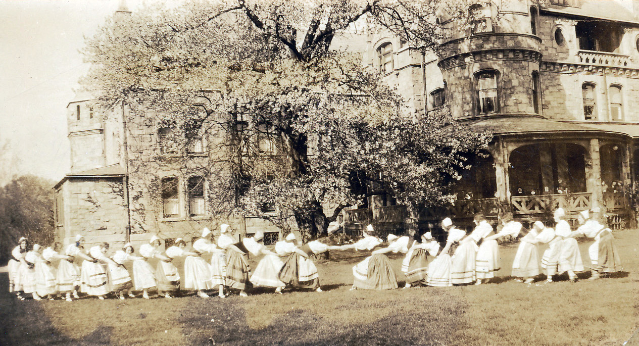 Rosemont College of the Holy Child, Rosemont, Pa 1921 - present. Photo of students on lawn of main building. |
