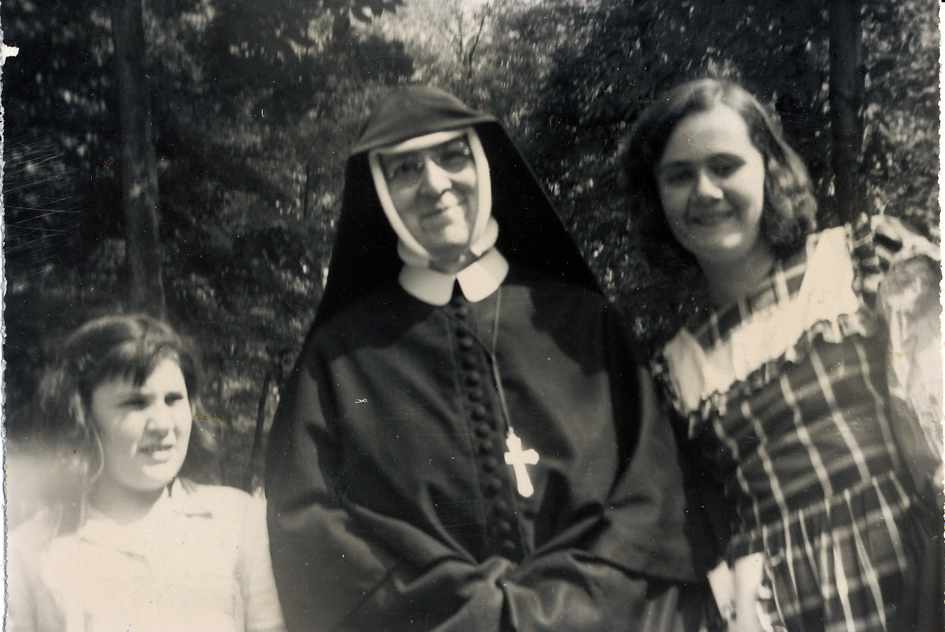 St. Elizabeth's, 187th and Broadway, NYC, 1936 - 1992 (?) Photo of students and teacher at a picnic at Tibbett's Brook. |