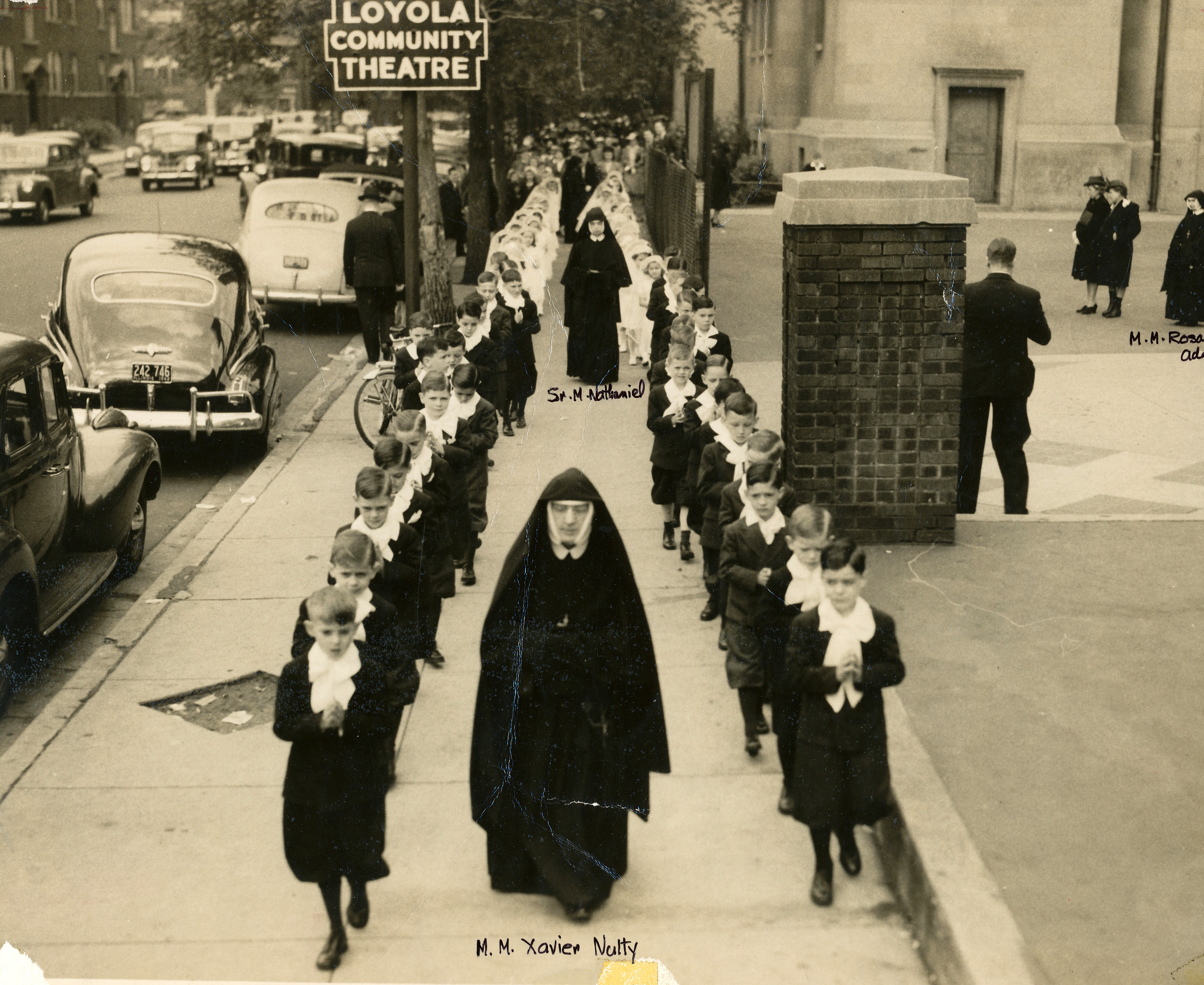 St. Ignatius Parish, Chicago, IL, 1909-1977. Photo of 1st Communion procession. |