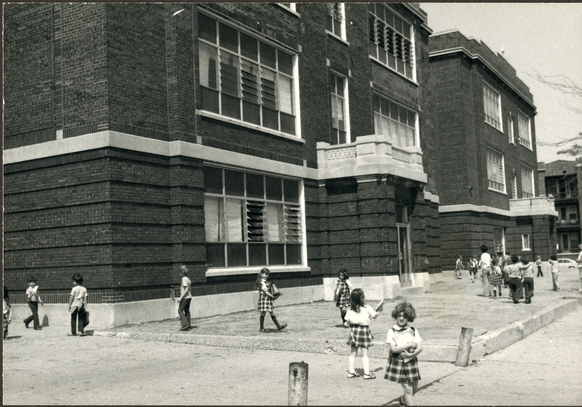 St. Ignatius Parish, Chicago, IL, 1909-1977. Photo of students on playground.