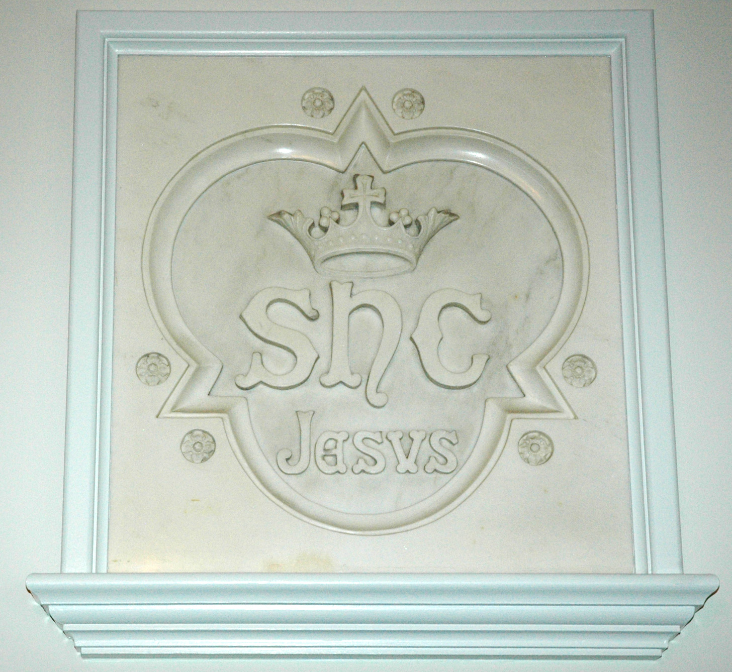 St. Leonard's Academy, Philadelphia, PA. Marble SHCJ seal; front altar piece at St. Leonard's.