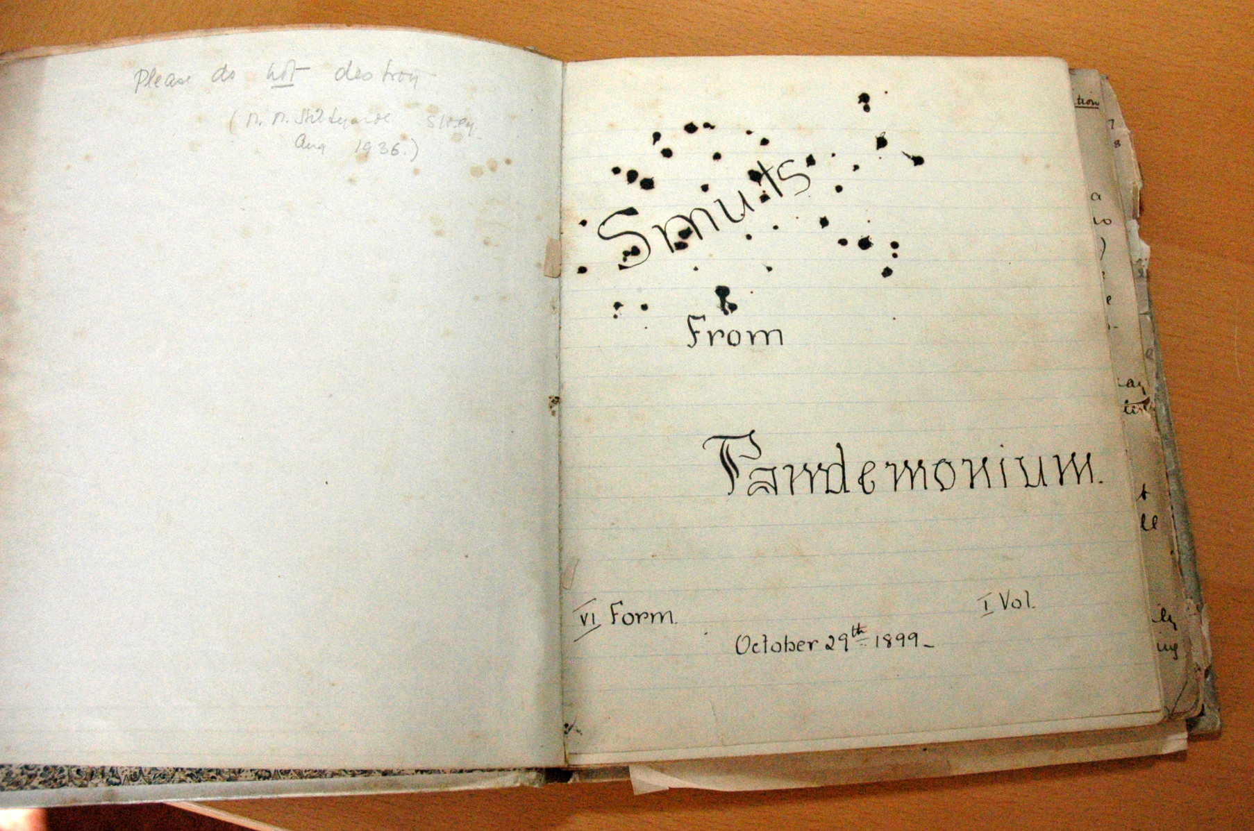 Convent of the Holy Child (school) St. Leonards-on-Sea. Page from "Smuts from Pandemonium," student journal or creative writing notebook. |