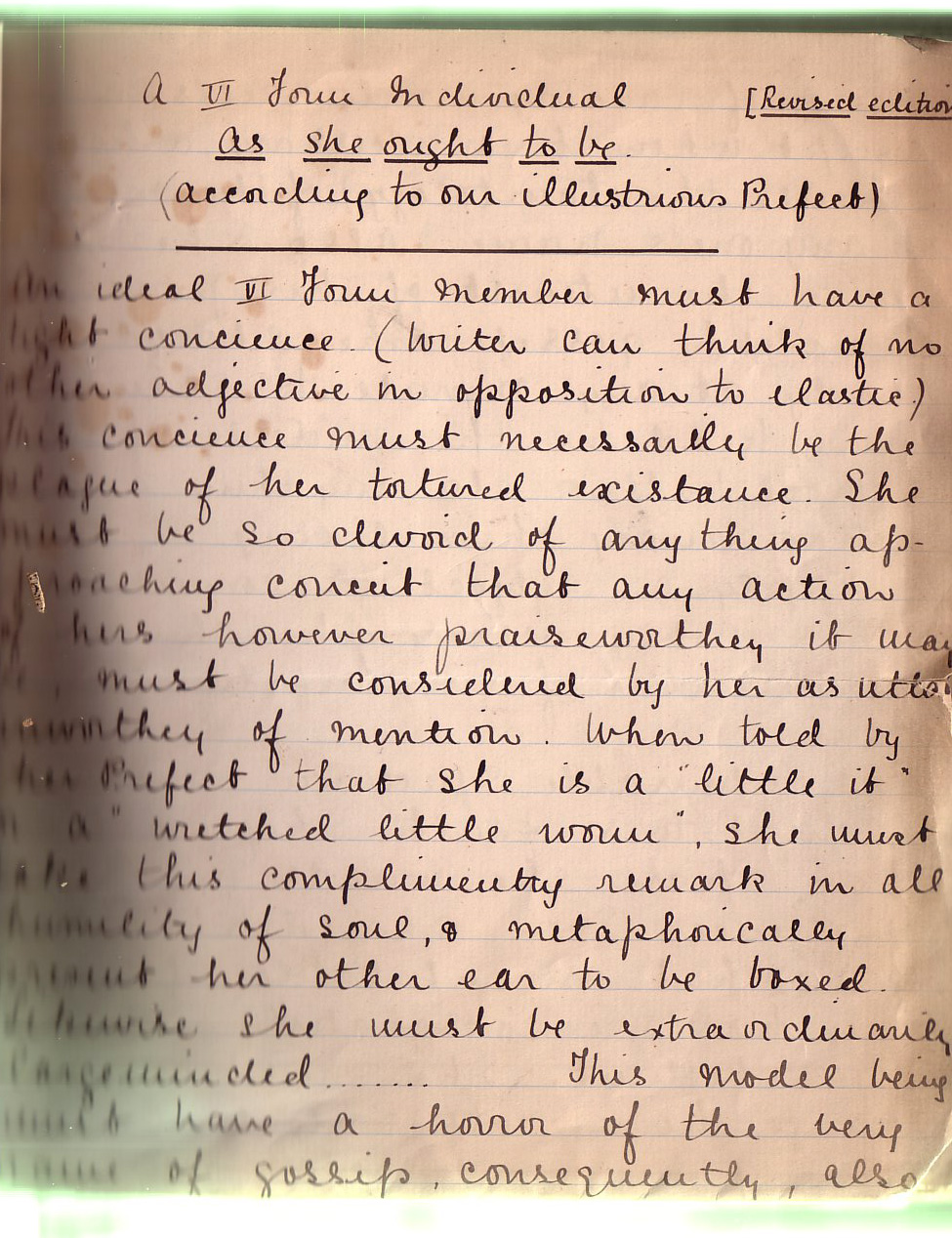 Convent of the Holy Child (school) St. Leonards-on-Sea. Page from "Smuts from Pandemonium," student journal or creative writing notebook. |