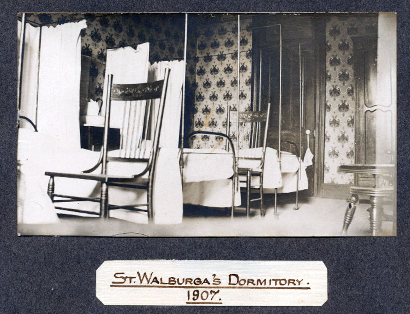St. Walburga's, W. 104th and (630) Riverside Drive, New York, NY, 1904-1957. Moved to Rye in 1957 and became School of the Holy Child, Rye. Photo of dormitory. |