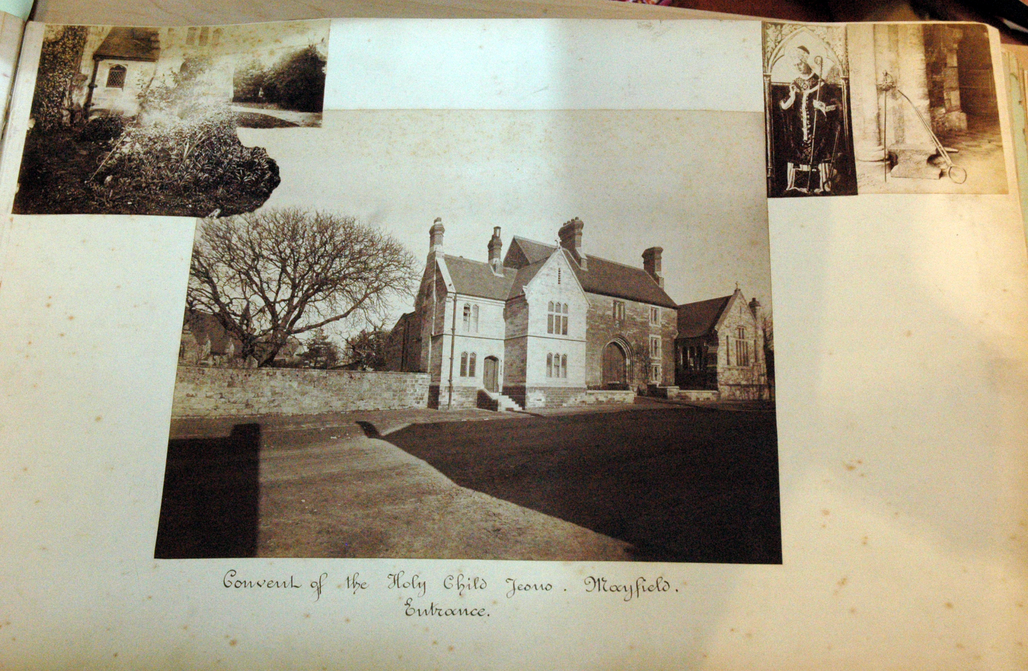 Sample page from book describing current society with listings of members and photos of convents, schools, etc. |
