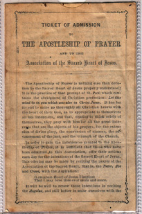 Cornelia's certificate of admission to "The Apostleship of Prayer and to the Association of the Sacred Heart of Jesus." (Front)