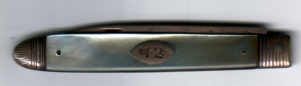 Cornelia's pen knife. Note the number "42." Each sister was given a number when she entered the society. All of her belongings were to be labeled with this number (for identification purposes.) Cornelia did not give herself the number one. |