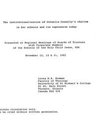 The Institutionalization of Cornelia Connelly's Charism in Her Schools and Its Expression Today |