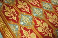 Tapestry rug stitched for Cornelia by SHCJ sisters for aisle of Mayfield Chapel. Stitched in panels then joined; originally ran entire length of chapel. Writing on border speaks of hidden God and delighting in him day and night. |