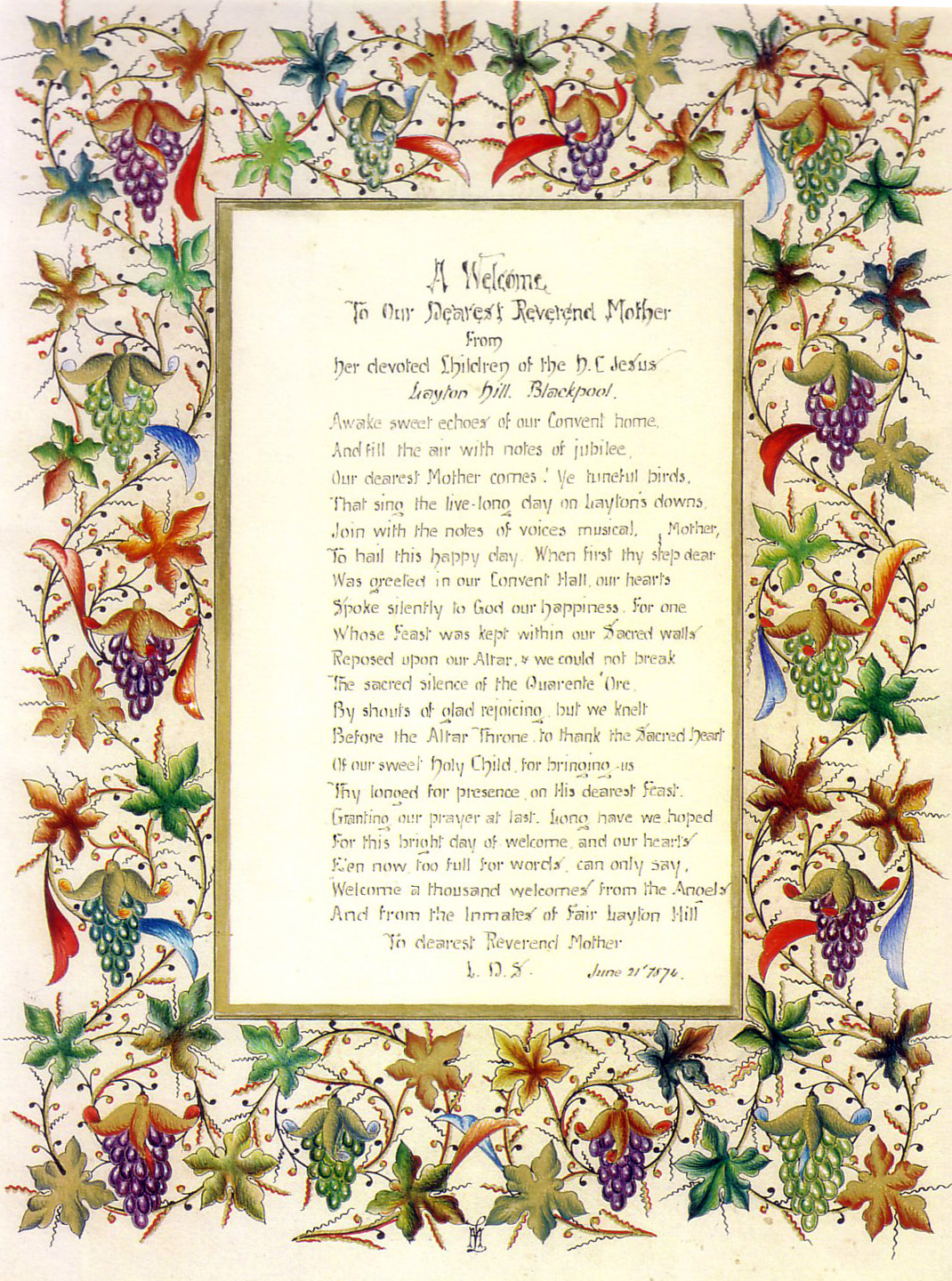 Illuminated text celebrating Cornelia's visit to Layton Hill