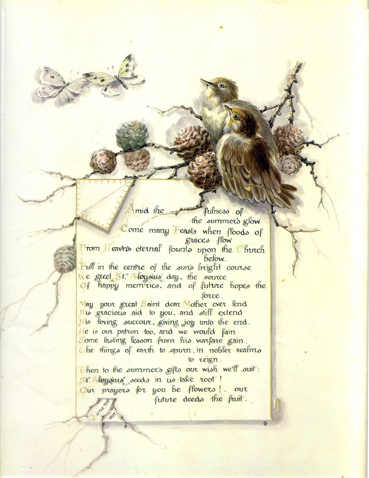 Prayer for St. Aloysius' Day, decorated by student