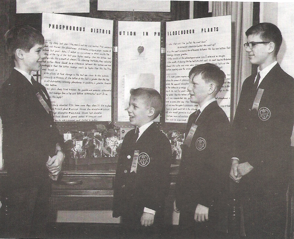 Rosemont School of the Holy Child, 1344 Montgomery Ave., Rosemont, PA; 1949 - present. Students Chris Denny, Tom Boyle, Gordon Cooney and John Clarke at Science Fair. |