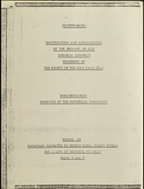 Southwarcen : Beatification and Canonization of the Servant of God Cornelia Connelly Foundress of the Society of the Holy Child Jesus : Documentation presented by the Historical Commission : Volume 65 Materials collected by Mother Maria Joseph Buckle for a life of Cornelia Connelly Parts 5 and 6. Part of the Society of the Holy Child Jesus Collection at Villanova Digital Library. Click here to access document. |