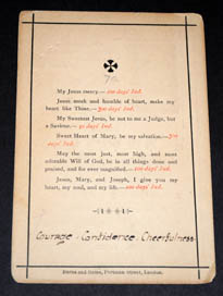 Prayer card memorializing and requesting prayers for the repose of Cornelia's soul. See also front of card. |