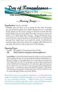 Prayer services to held to commemorate the 150th anniversary of the arrival of the Scotia. Note page numbers; meant to be printed and assembled as booklet. |