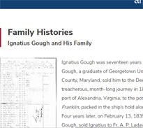 Family history of Ignatius Gough who was enslaved to the Jesuits in Grand Coteau and eventually married, Sally, an enslaved person owned by the Connellys. Click here to read article. |
