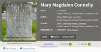 Entry for Cornelia's daughter, Mary Magdalen on the Find A Grave website. Click here to access information. |