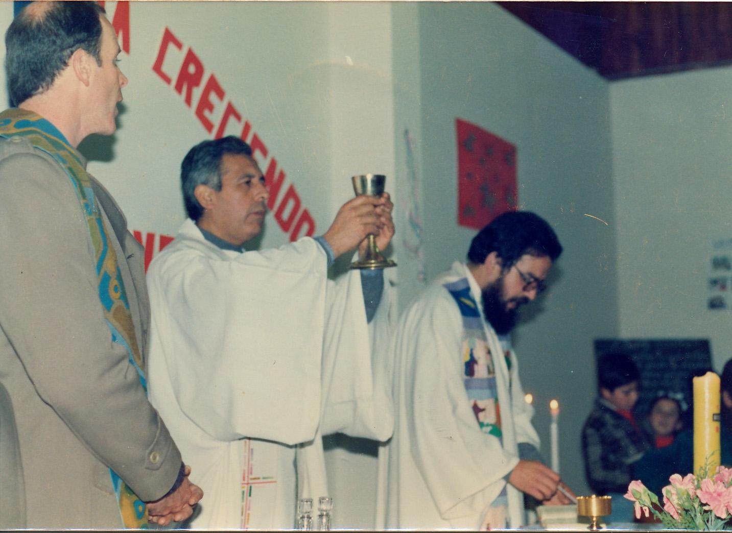 Centro Cornelia Connelly, Santiago, Chile (Evolved out of Santo Tomas, Comunidad Cristiana) Photo of mass in the the first church building. |