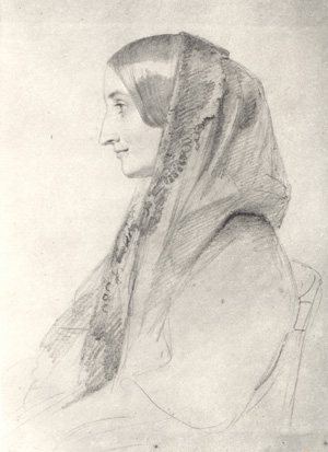 Crayon sketch and oil painting of Cornelia. Sketch done as a pair with one of Pierce; "reputedly done by Princess Sciarra Colonna, it would more likely to be done within the Shrewsbury circle, perhaps by a Donna Chiara Colonna Doria di Caretto." Modern oil version done by Irene Dee Schachter. (Positio) |