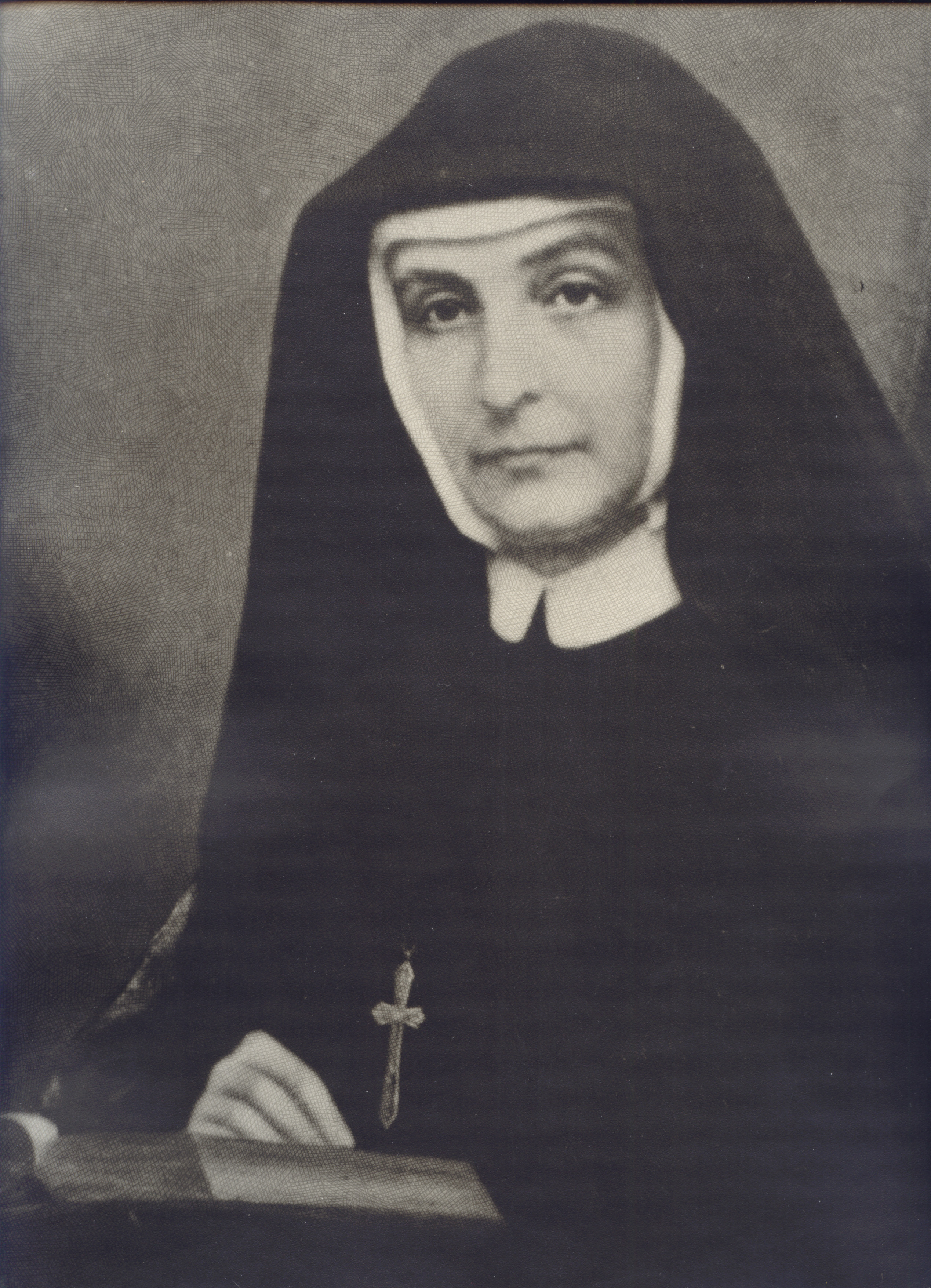 Oil portrait of Cornelia by Henry Godbold taken from his photo (CC-18). The portrait is currently at Hastings (info from Positio). Note: Cornelia was not known to have worn the Society cross during her lifetime. |