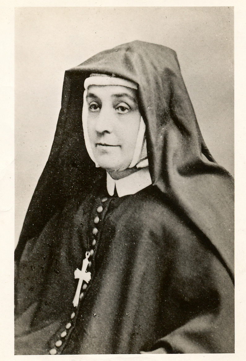 Photo of Cornelia Connelly. Apparently this photo and others like it, with the large cross on Cornelia's chest, are retouched photos as Cornelia was not known to have worn the Society cross during her lifetime. |