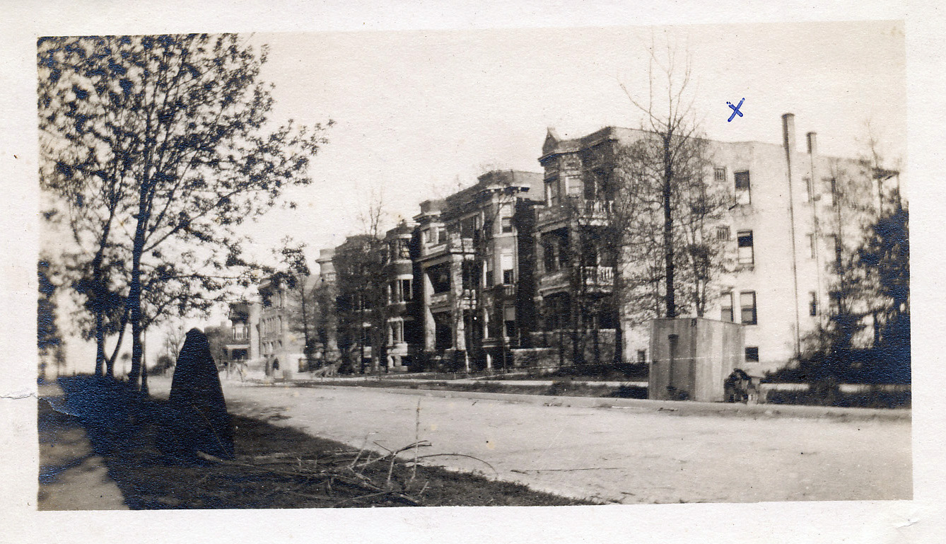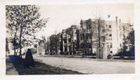 1337 Hayes Ave.(a.k.a. "The Flats"), Chicago, 1907-1912. "Hayes Ave. looking toward the Lake. The first house is the SHCJ home at present." (from back of photo) |