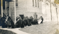 6589 Sheridan Road, Chicago, IL, 1910-1921. Photo of community "at recreation in garden."