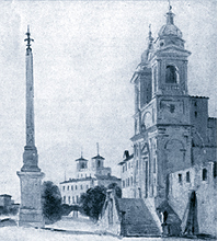 Sketch of Trinita dei Monti, above the Spanish steps'by Ippolito Caffi (1809-66); Cornelia lived here as a postulant; Ady boarded at the school while Cornelia lived in a cottage on the grounds with Frank and his nurse. |