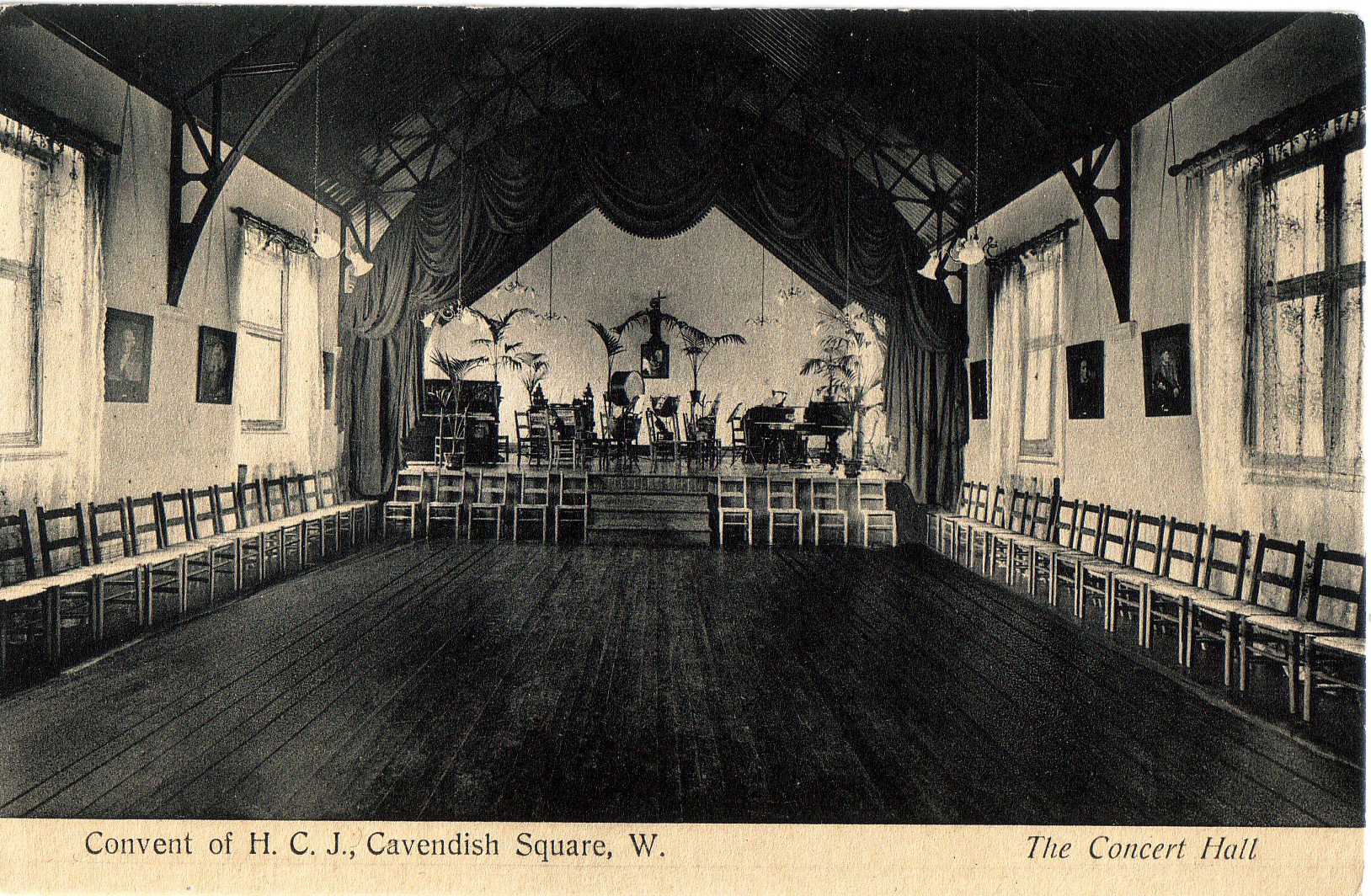 Convent and School of the Holy Child Jesus, Cavendish Square, London. Postcard of Concert Hall. |