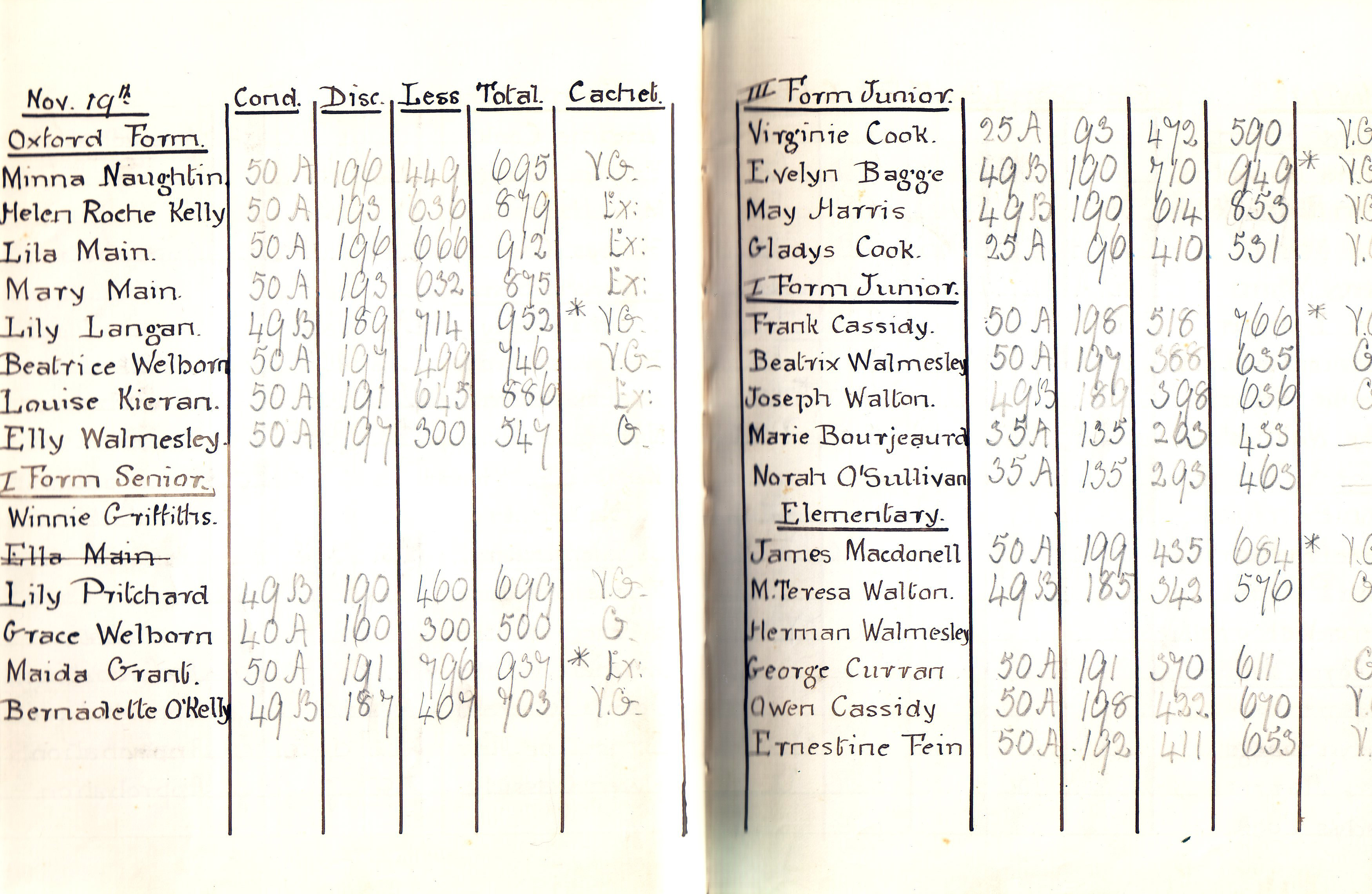 Convent and School of the Holy Child Jesus, Cavendish Square, London. Page of gradebook |