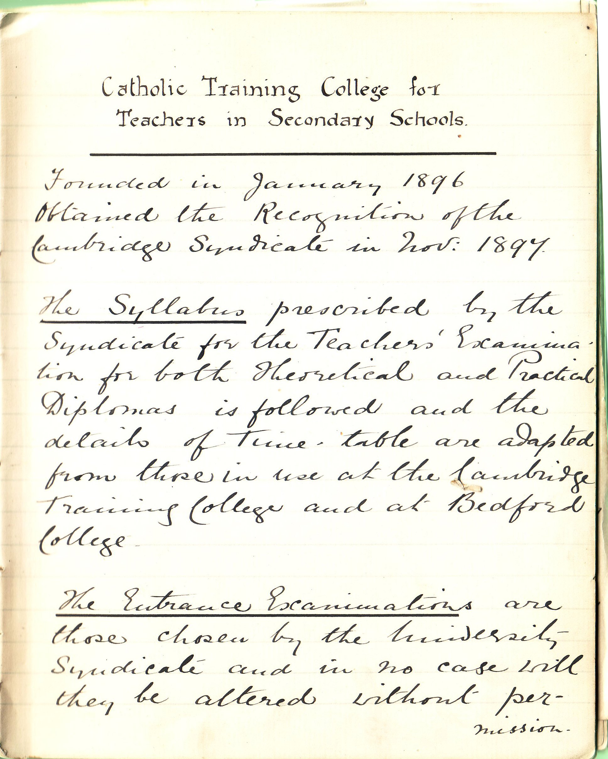 Convent and School of the Holy Child Jesus, Cavendish Square, London. Pages from Syllabus for teaching college. |